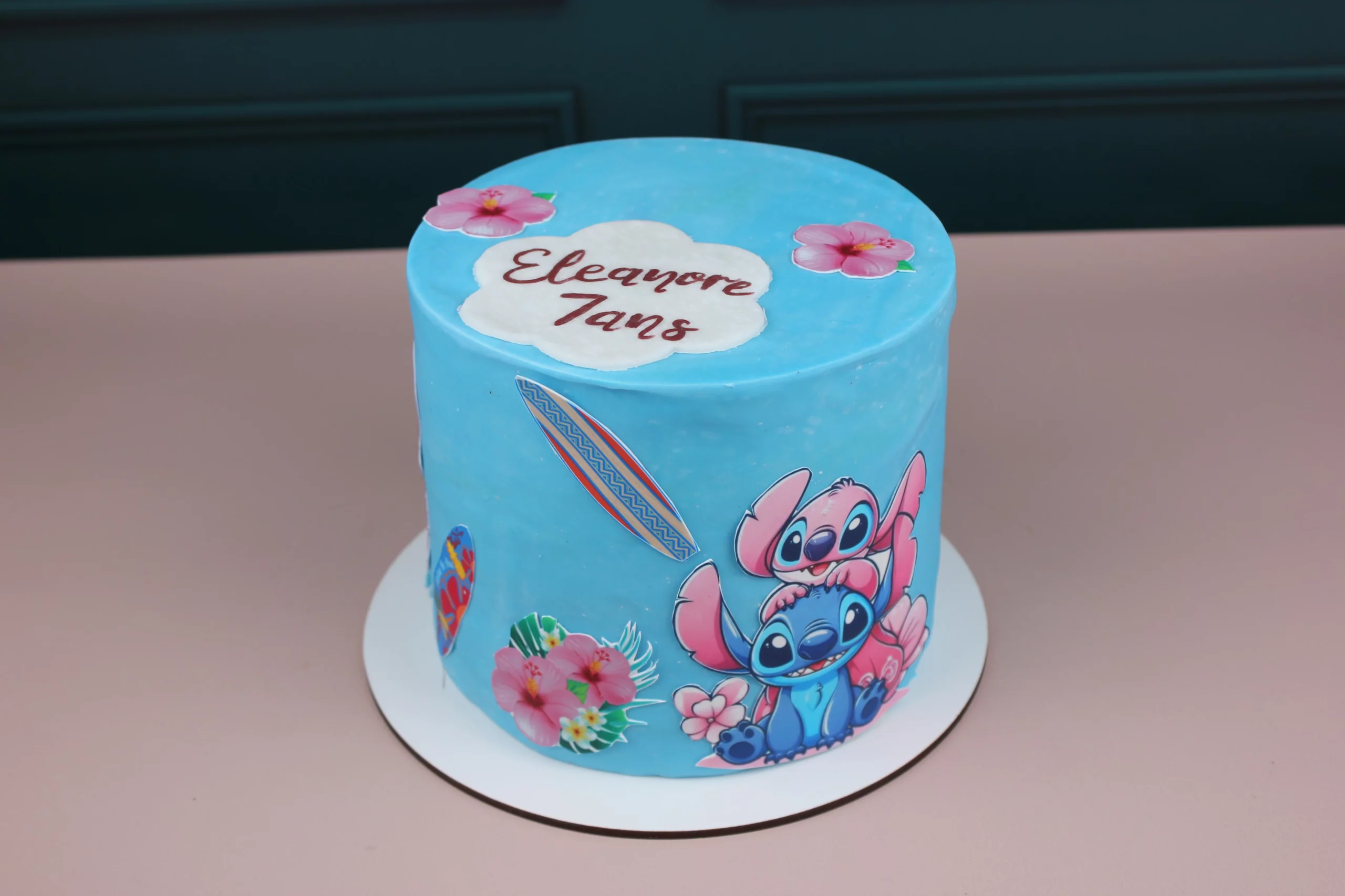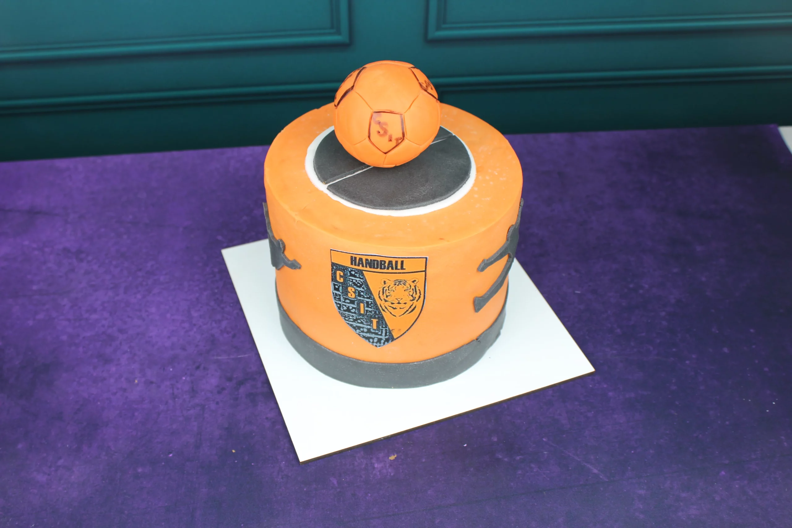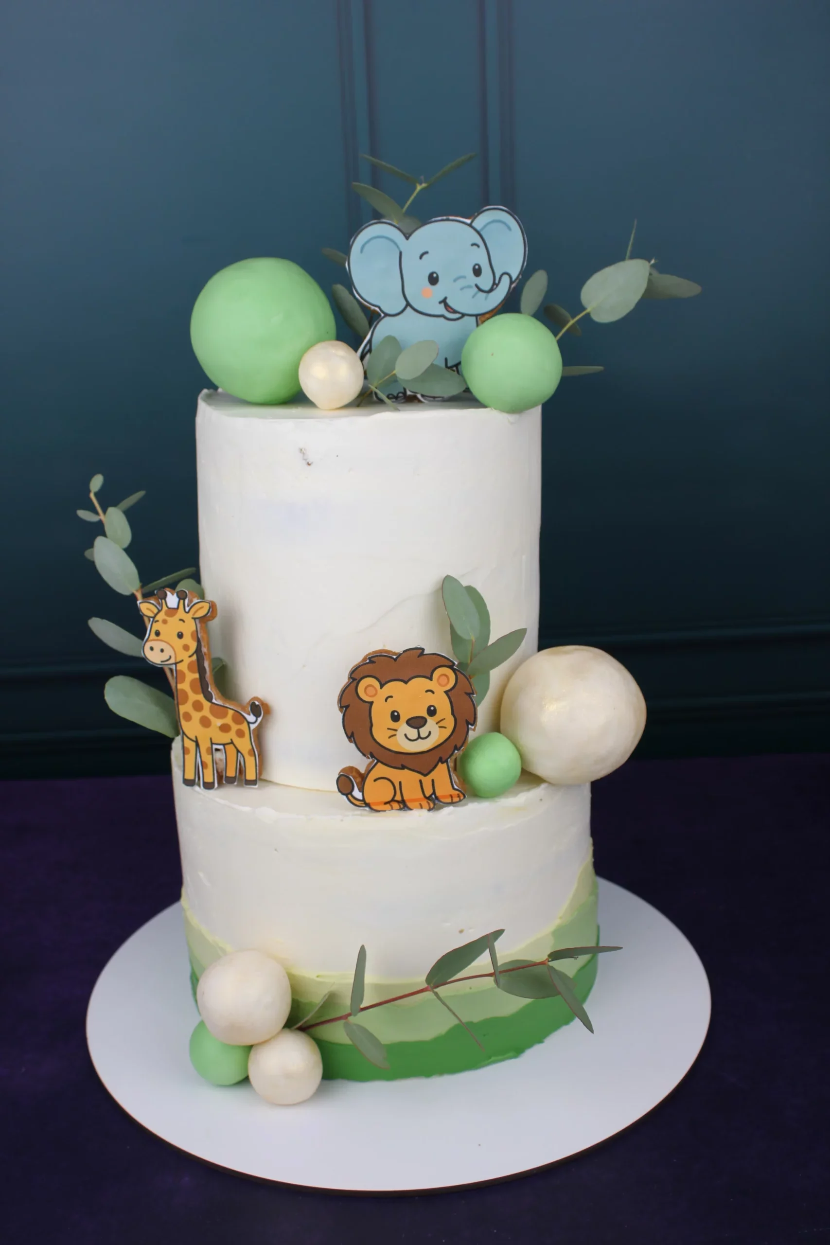 Utilisant la même base, ce gâteau est habillé de pâte à sucre pour une décoration sur mesure.